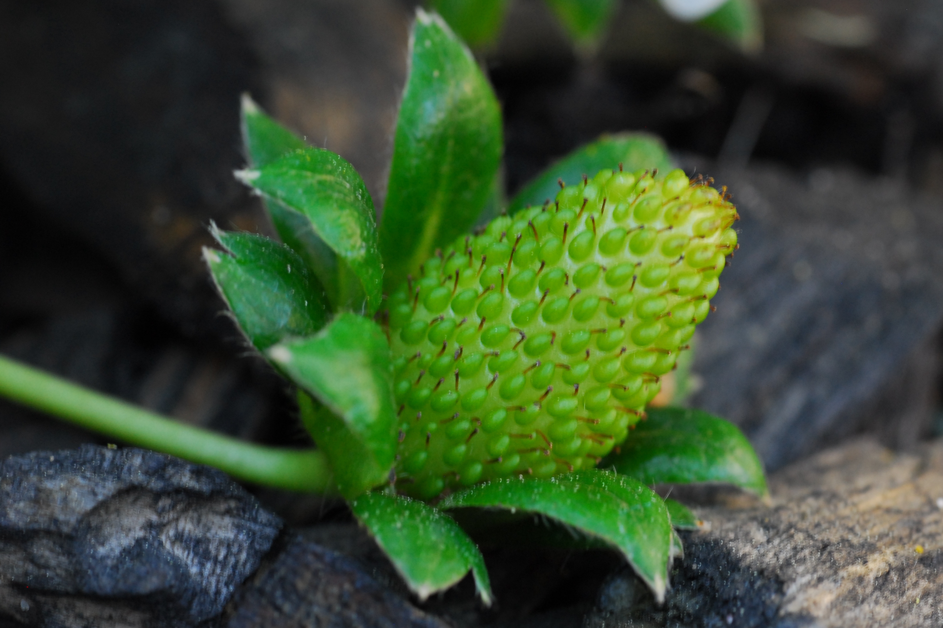 Even green the strawberries so perfect