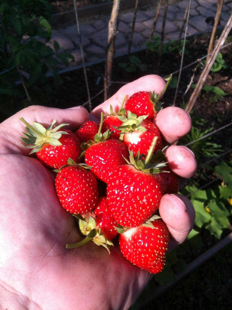 A handful of small but delicious strawberries. Yum!