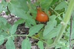 I tried my best to have a ripe tomato before May 1st. I came close…..the garden that I put in for my friend John trumped me by over a week with multiple ripe red cherry tomatoes. Now, he has his own battle with his tomato loving dog Pismo…. Well I was checking out the lower level of one of the Celebrity tomato plant near the back of my garden and wow – a 4+ inch red globe of a nearly ripe tomato, a slicing tomato, a tomato begging to grace a sandwich, a tomato perfect for en echelon display on my plate next to some fried eggs…. in a healthy oil like BUTTER! I grabbed the camera snapped my tomatoes smile and rode over to John’s house, hopefully to gloat a little, but also to check on his tomatoes. The pictures don’t lie…. I am winning this skirmish! Aren’t we all winners by growing some of what we eat?