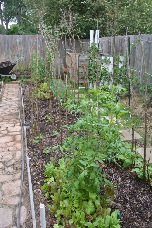 I am fortunate to have” Farmer Kathy” at home while I am away. Now, she does not necessarily have my level of passion for the garden but she seems to love me enough to take on most of the farmer duties. She waters, she pulls weeds – in this task she may exceed my attention to detail, thanks Hun – she gladly harvests the goodies….this morning( June 6th) she told me about all of the blackberries she picked, many eaten on the spot – I was hoping some would make it to the freezer for my jam making efforts. She noted that the strawberry harvest is slowing down but the Sequoia plants in a bed near the back door are setting fruit! The tomatoes…. the slicing ones are overwhelming our needs and will need to be shared! Many of the cherry tomatoes succumb to the same fate many of the blackberries encounter…..immediate onsite consumption…..I can’t say as I blame her……..Farmer Bishop behaves in pretty much the same way.