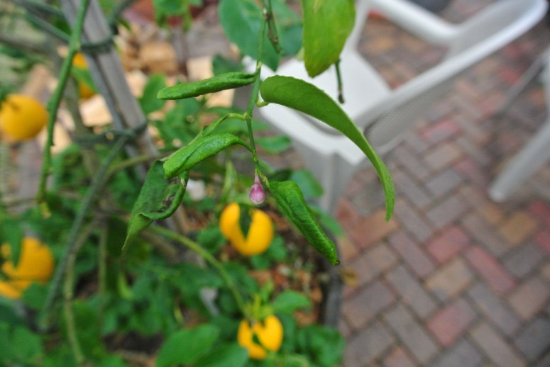 Look close…an out of focus lemon blossom is forming as of New Years Eve 2012 – Northern Hemisphere.