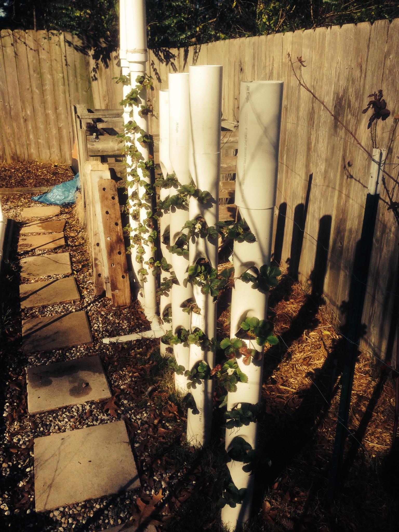 The strawberries are blossoming and the high achievers are beginning to ripen! You have seen my past posts on my strawberry towers and if you haven’t you can search going backwards in time. I have reloaded the towers with Chandler strawberries after adding a few more pockets to the shorter towers.