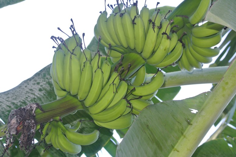 A dense bunch of Manazano variety.Very nice to eat, small to medium sized banana tasting a bit like green apples.