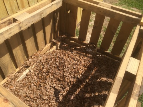 Just a quickie. I went over to my son’s house to let his dog out while Ben is at work. I knew he was embarking on his own backyard farming adventure, starting with compost bins. He had even began talking in terms of the ratios of browns to greens in the mix. That makes my heart sing!