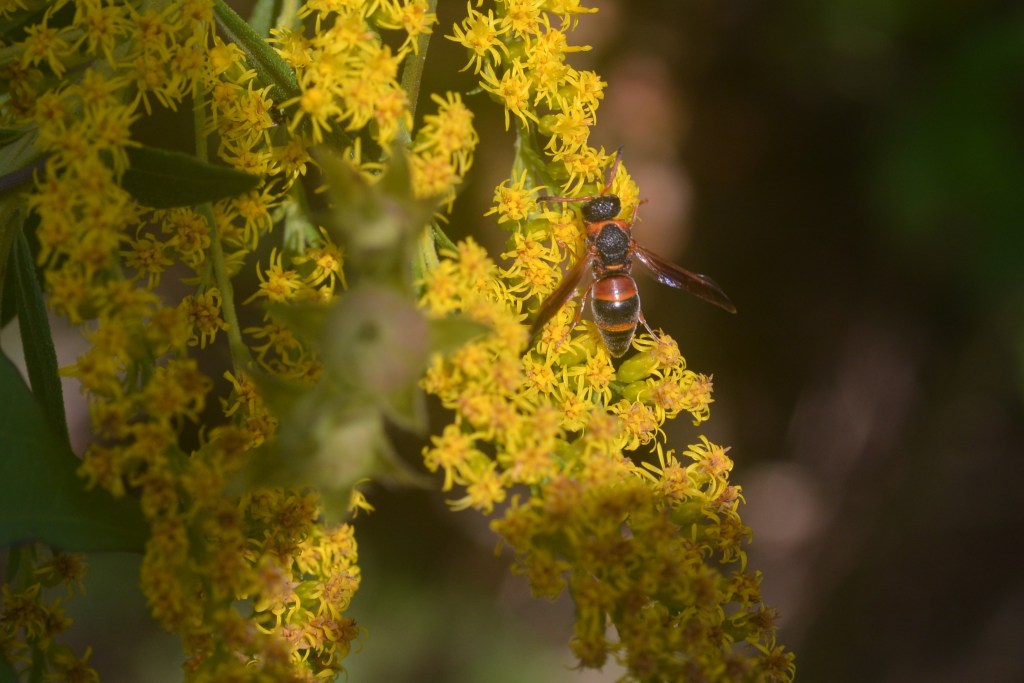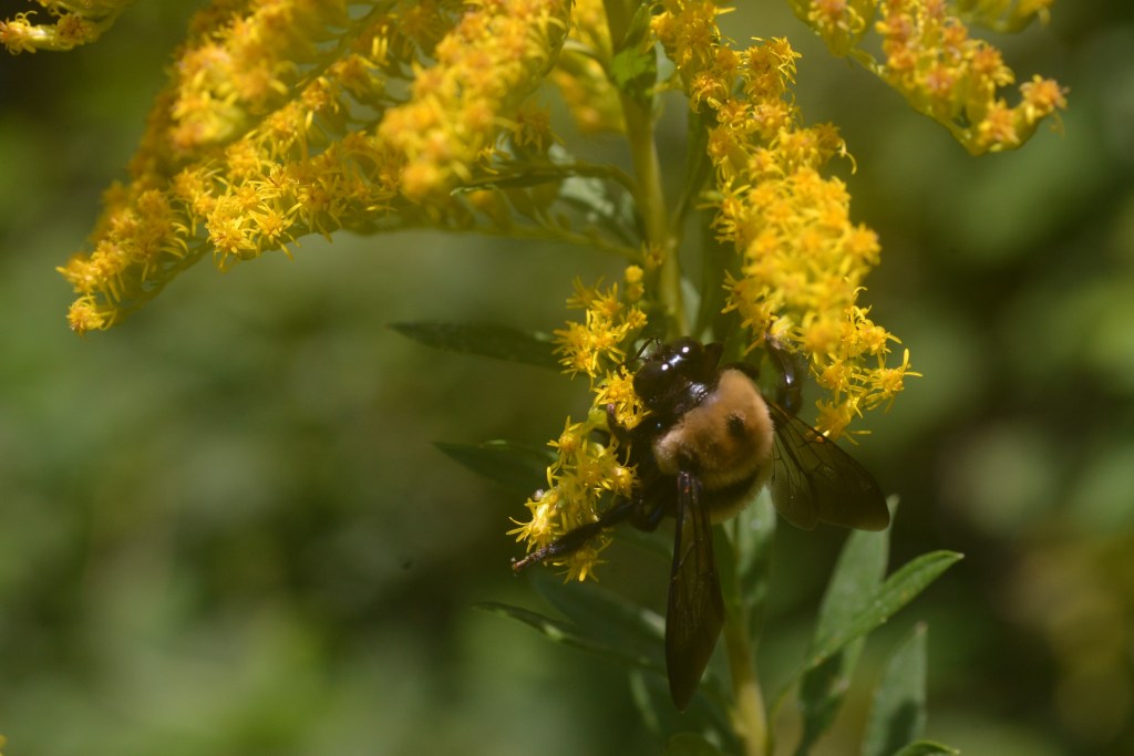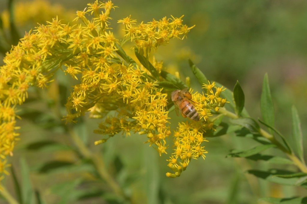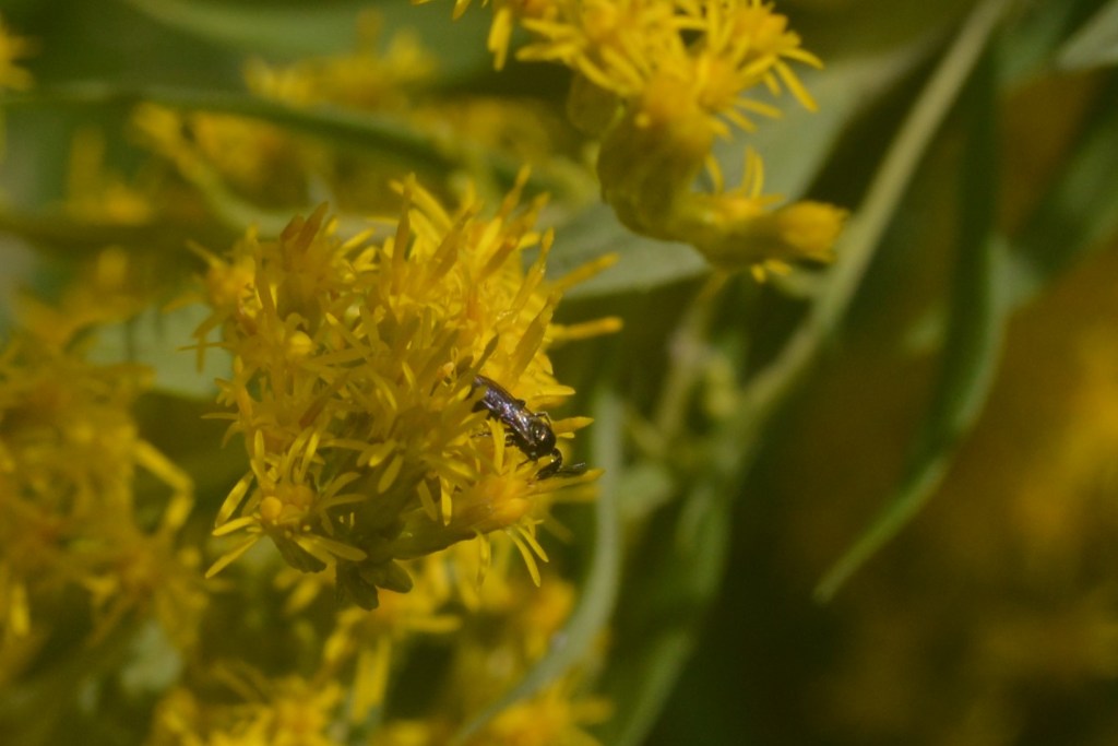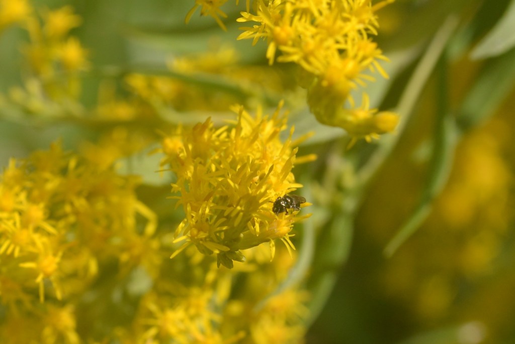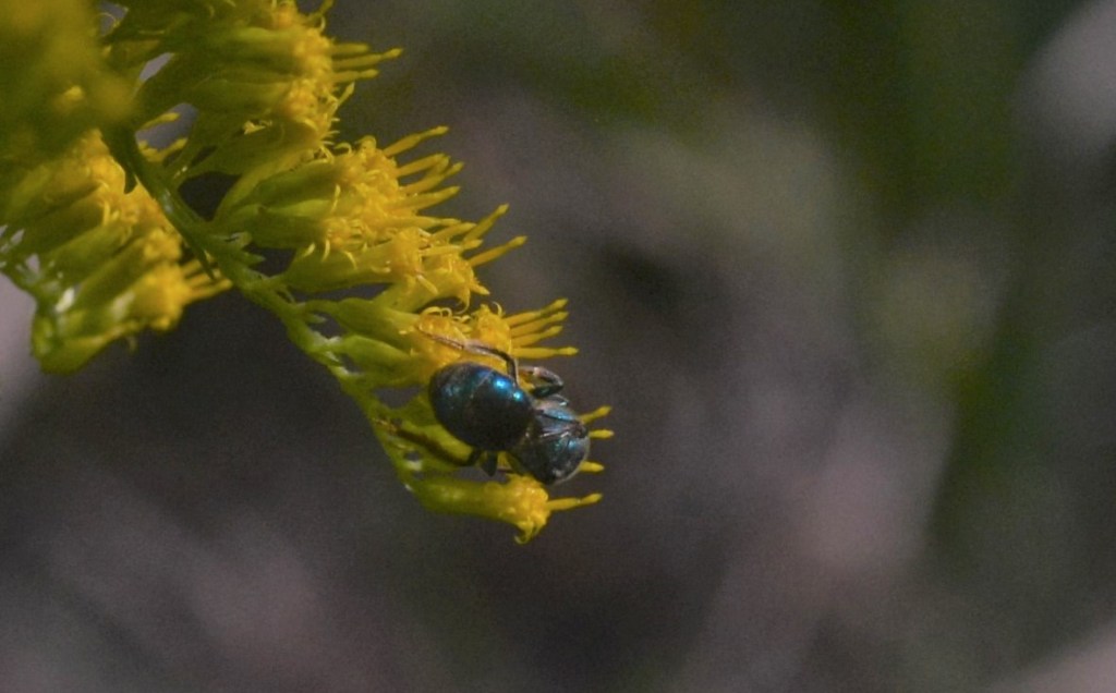 Next group will include the teeny and tiniest that I was able to observe. All of the photos in this blog were shot in October of 2021 with a Sigma 90mm Macro lens……and yes I am still practicing. Before I will go on with some more photos I will reference Jennifer again. Her “how to grow bees” post really addresses what we need to create a winged critter friendly environment. When I have discussions with folks about my beekeeping I get lots of comments about protecting honeybees. This allows my to bring the discussion around to the myriad of pollinators that very few people even realize exist. I have a little shelter in my backyard that houses Mason Bees through out the year……unknown to many is that they may actually be a better pollinator than honeybees – they are also known as Orchard bees. You will notice wasps and hornets on blossoms….their larvae need protein to develop of which pollen is the key ingredient. And others that I have zero knowledge of what they need and how they utilize it. 2023 I may make a concerted effort to polish my macro lens skills and attempt to catalog the many winged critters on the Goldenrod.