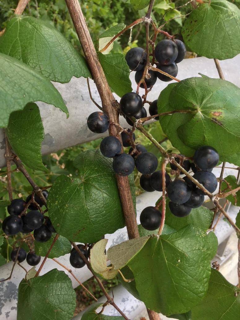 I am I little taller than the average guy. I saw purple spots on the bike path on the West Lake Houston bridge and looked up. Within my grasp was a vine….a good firm pull and it was down at picking height.