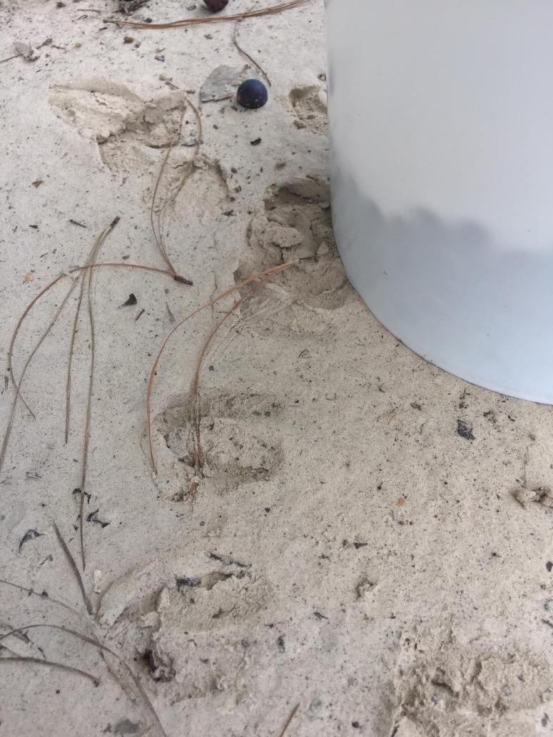I have competition. In the shadow of the big city, adjacent to a busy 4 lane highway is a patch of grapes tempting the local deer. Look closely at the tracks in the sand. I probably picked 4 pounds from this location where the deer were browsing.
