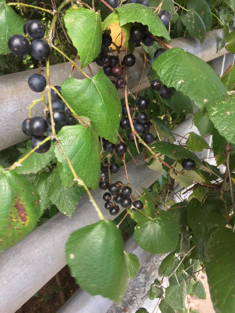 I am I little taller than the average guy. I saw purple spots on the bike path on the West Lake Houston bridge and looked up. Within my grasp was a vine….a good firm pull and it was down at picking height.
