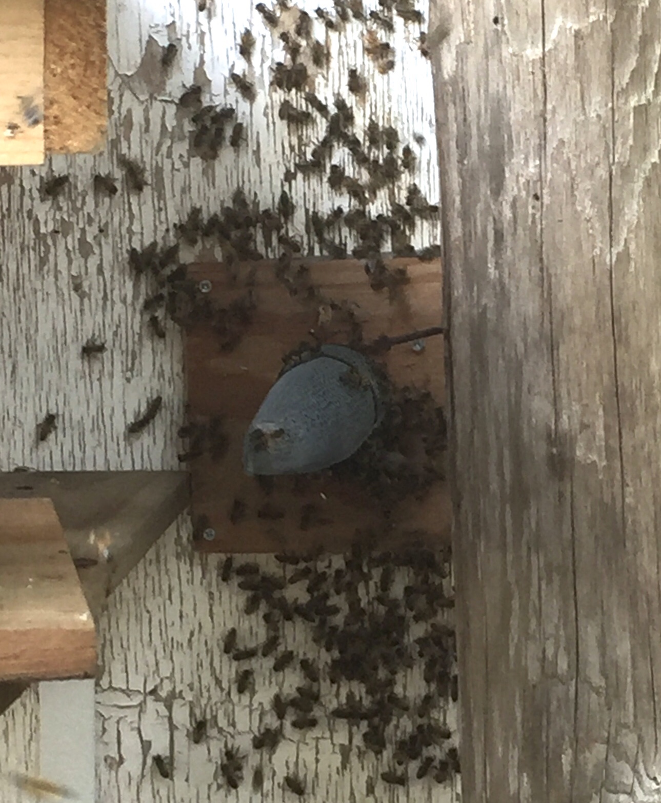 I do have some spicy bees but, knock on wood, nothing so spicy that I can’t safely work them. Africanized bees tend to spin off swarms more often and will take up residence in smaller cavities, i.e., like water meter boxes. They can be very productive, so I just tend move carefully/slowly, well protected and respond at the first hint of the alarm pheromone…..My first year of beekeeping taught me a good lesson and was way to slow to respond. Nine years later I have not repeated that mistake.