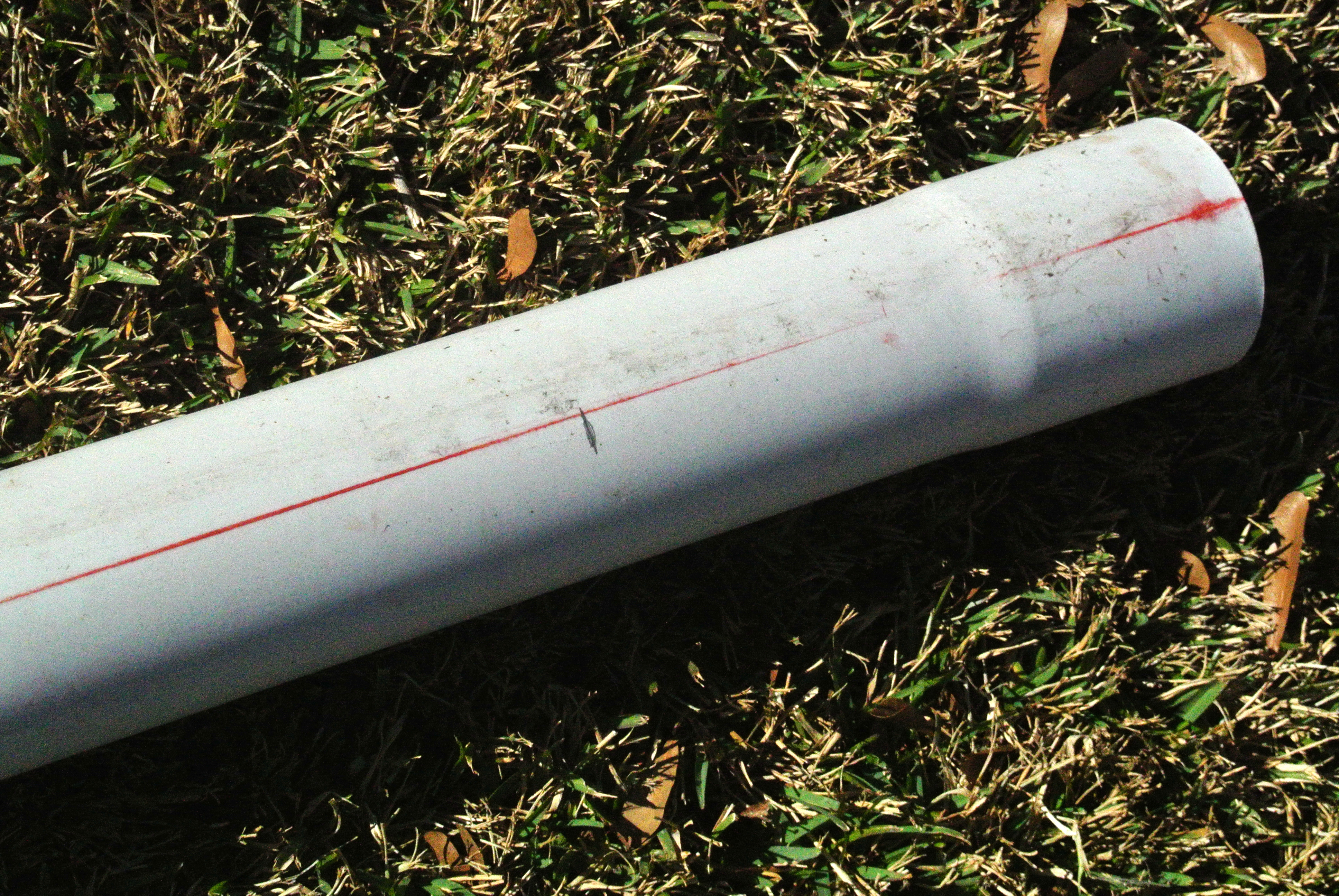 Started with a center line snapped with a chalk line on 3″ PVC drain pipe.